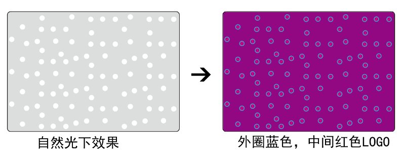 表面有(yǒu)色或者无色,里面雕刻微缩LOGO图像。更能(néng)起到很(hěn)好防伪效果,也可(kě)做多(duō)色荧光,或者加入红外等材料。