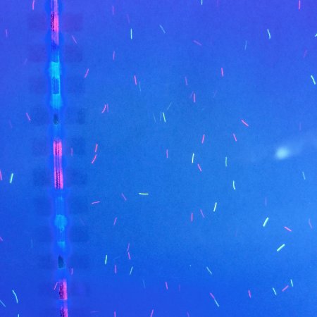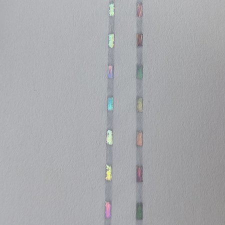 •纤维纸:造纸时将红蓝等有(yǒu)色纤维或彩色小(xiǎo)片(点)掺入纸浆内,或在纸张未定型前撒在纸张表面,在紫外線(xiàn)照射下有(yǒu)荧光反射,使纸中(zhōng)带有(yǒu)區(qū)别于纸张本身的有(yǒu)色纤维。掺入纸浆中(zhōng)的红蓝纤维丝和彩点有(yǒu)彩色纤维与无色荧光纤维两种。