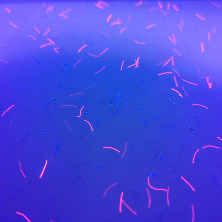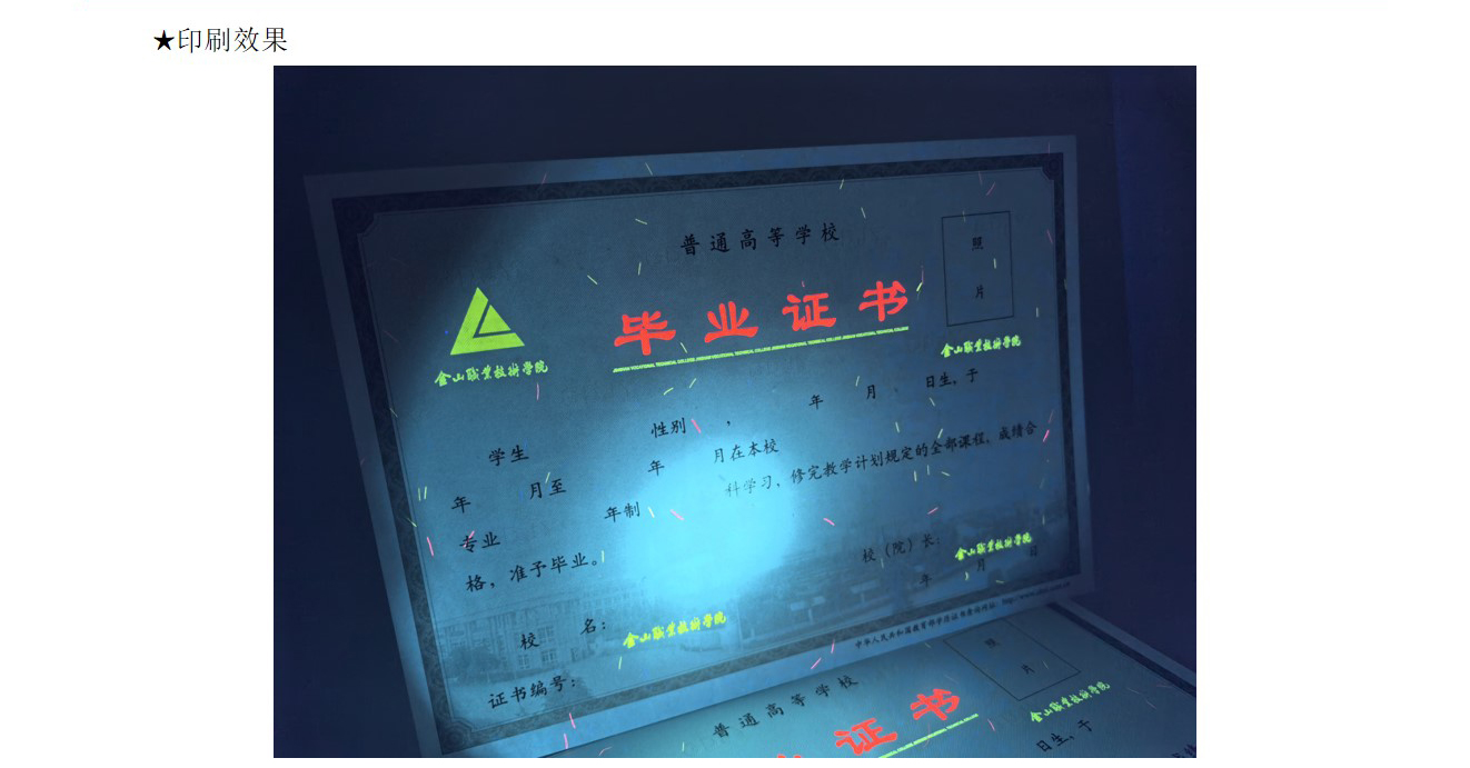 纤维纸:造纸时将红蓝等有(yǒu)色纤维或彩色小(xiǎo)片(点)掺入纸浆内,或在纸张未定型前撒在纸张表面,在紫外線(xiàn)照射下有(yǒu)荧光反射,使纸中(zhōng)带有(yǒu)區(qū)别于纸张本身的有(yǒu)色纤维。掺入纸浆中(zhōng)的红蓝纤维丝和彩点有(yǒu)彩色纤维与无色荧光纤维两种。