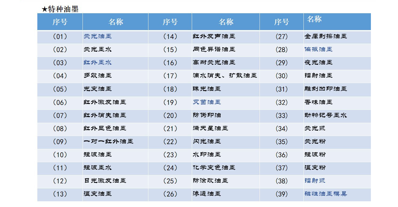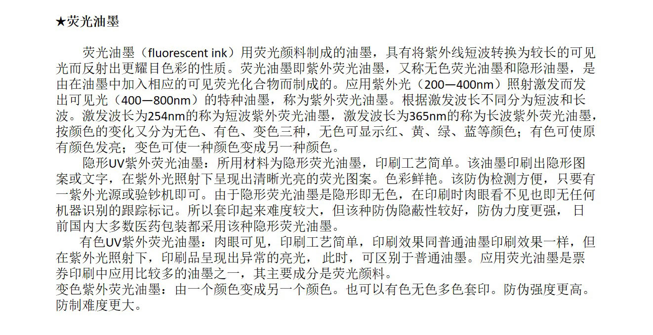 • 荧光油墨
