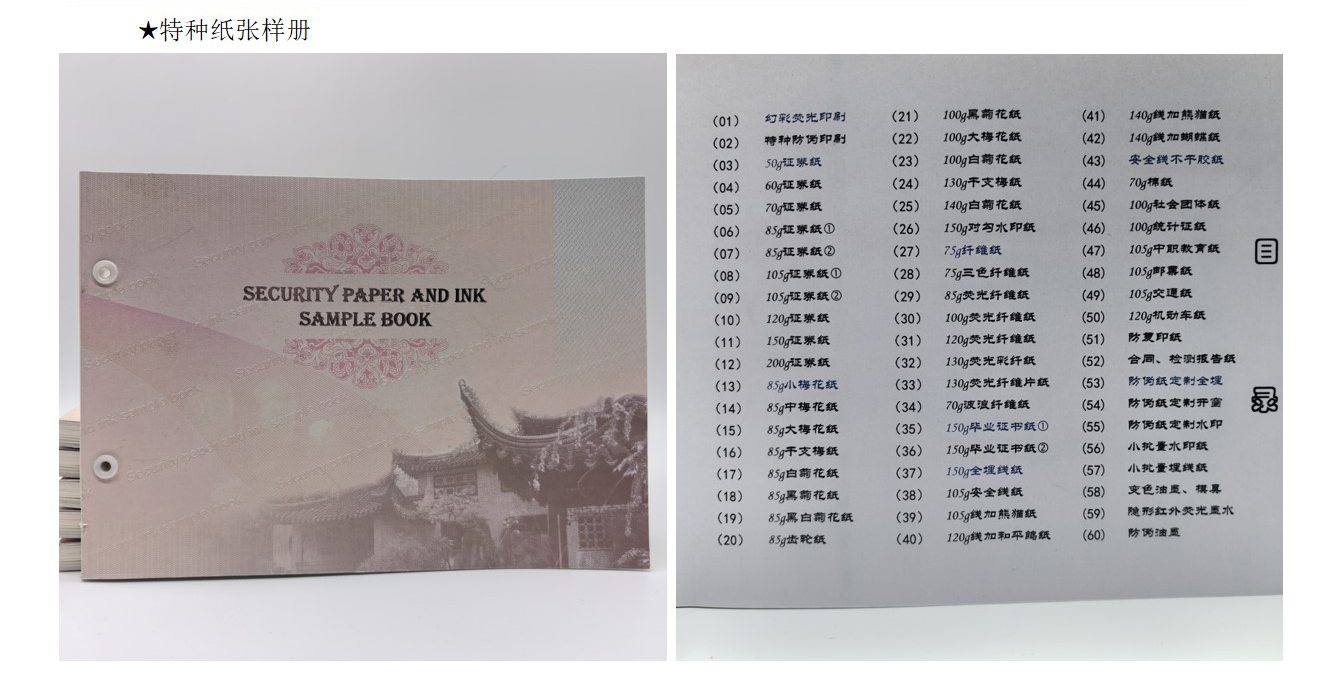 水印纸:水印纸是有(yǒu)浮雕、可(kě)触摸图像、条码等的纸张。钞票用(yòng)的便是水印防伪技(jì )术。因水印不能(néng)用(yòng)影印机、扫描器等再现,故其防伪效果甚受重视。